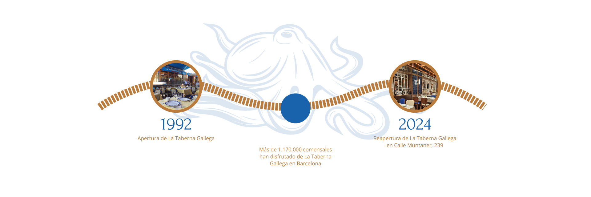 Ahora, en 2024, estamos emocionados por la reapertura nuestras puertas en una nueva ubicación, en pleno centro de Barcelona, en la Calle Muntaner, 239. Volvemos con más fuerza que nunca, para seguir ofreciendo la auténtica cocina gallega que tanto nos caracteriza.